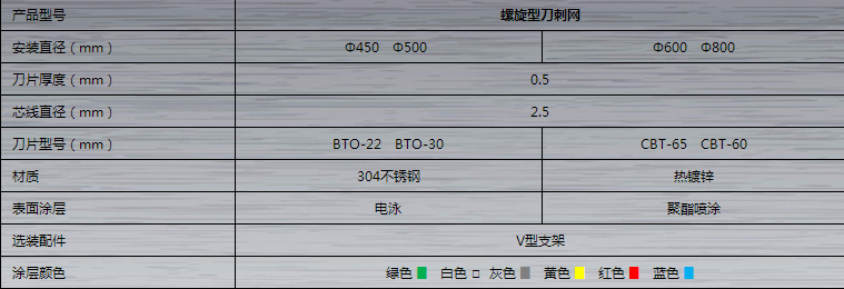 刀片刺繩分根據材質和表面處理分為:熱鍍鋅、冷鍍鋅、不銹鋼、噴塑等。以上規格都是常用規格也可以根據客戶要求定做。安平縣艾瑞護欄網生產監獄鋼網歡迎新老可以咨詢選購。