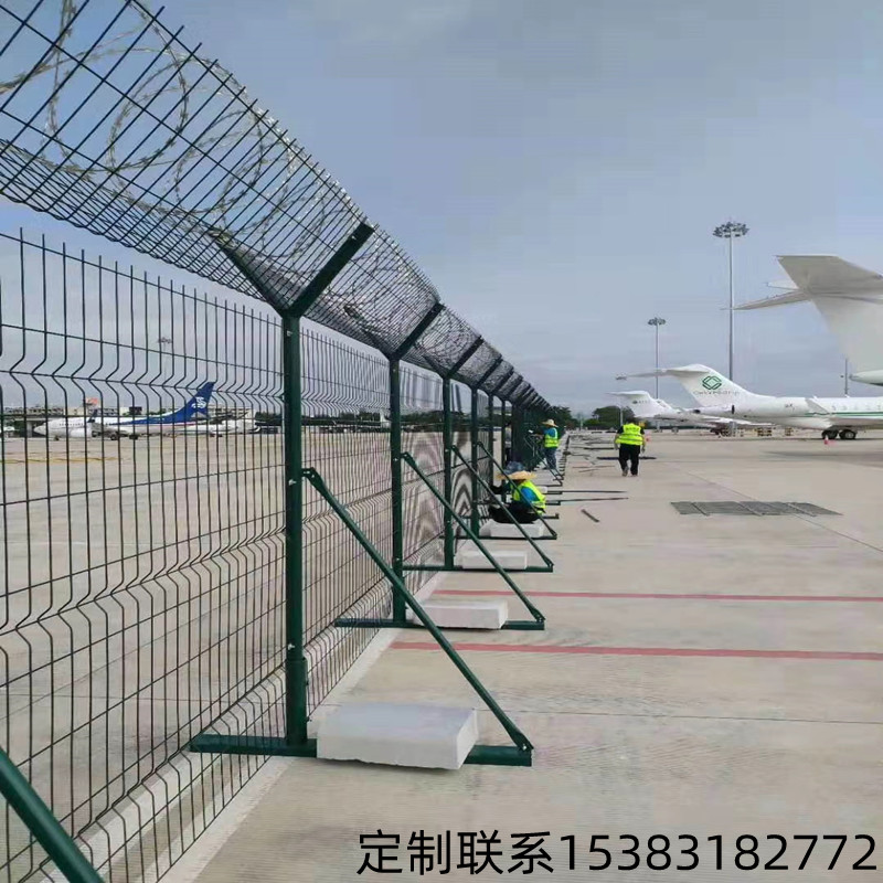 機場護欄網,我們稱之為"Y型柱”護欄網,通俗叫法有機場圍網、機場隔離網。是機場邊界的重要保護措施、防攀爬能力強,有效防止人為破壞性拆卸和對機場設施的破壞,保證機場安全,讓飛機起飛更加順利。主要用于機場封閉、監獄防護、軍事重地、開發區隔離等高安全場所。
