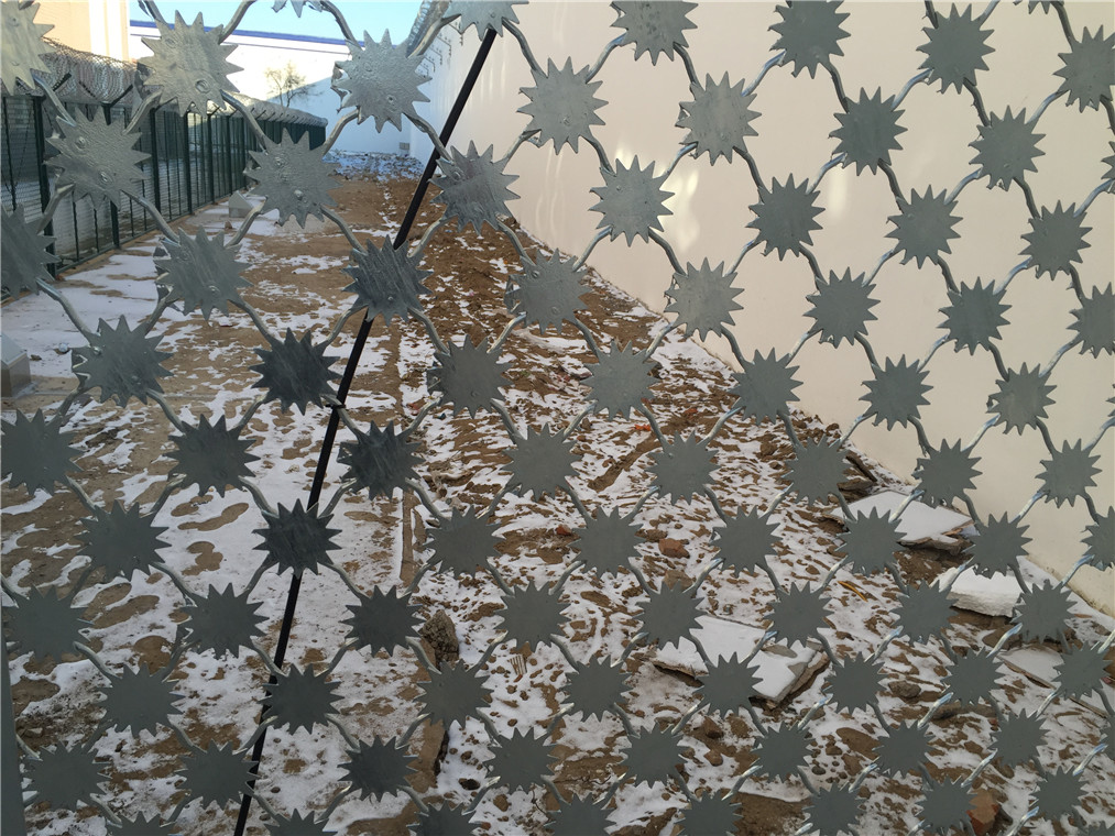 1、監獄梅花剌隔離網連接、緊固件應采用防盜專用螺栓(螺母)加彈簧墊,安裝國定后無專用工具無法拆卸,安裝配件均采用熱鍍鋅處理。