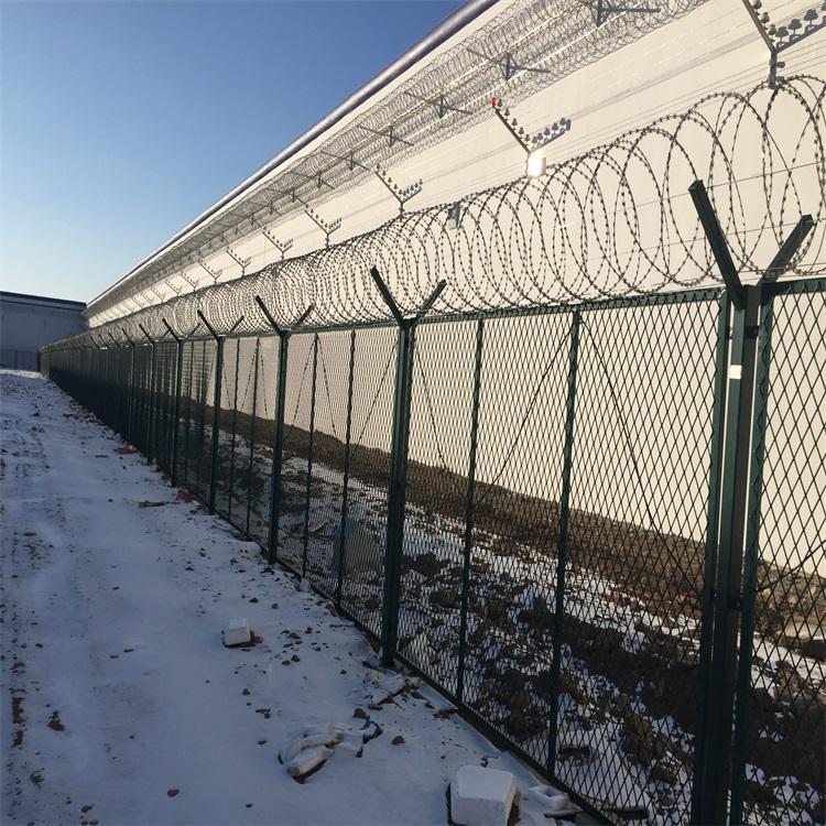 以上四種規格樣式是監獄、看守所、戒毒所等高戒備場所監區隔離網常見的樣式,圖一是看守所常用的,經常是用在看守所監墻內或巡邏道鋼網墻,從工程造價上也是相對比較便宜的,他是由普通邊框護欄網和蛇腹型刀刺網組合而成的。圖二現在在巡邏道上應用比較廣泛,它是刀片刺網加蛇腹型刀刺網組合而成。整體看上去就給人一種不寒而栗的效果。圖三常用在監獄內,梅花刺刀刺網不僅整體給人一種整體美感,網片中太陽花刺還能起到很好的防脫逃作用。改變了以為監獄鋼網墻呆板的印象。圖四鋼板網鋼網墻不僅堅固耐用而且安裝方便簡單。使用壽命長,而且防腐效果極佳。