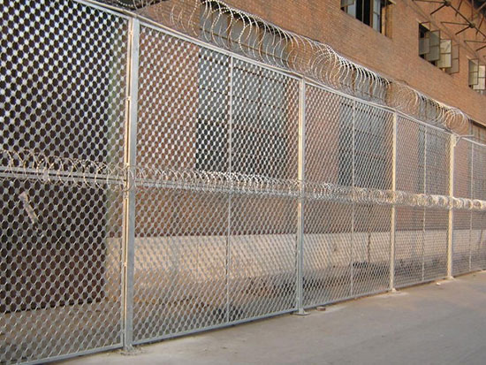 4、監(jiān)獄鋼網(wǎng)墻防攀爬能力極強(qiáng)、加強(qiáng)網(wǎng)片增加了其被破壞的程度、使用時間長、堅固耐用。螺旋型交叉刀片刺網(wǎng)是在兩條刀片刺網(wǎng)之間以不銹鋼片和鍍鋅鋼片強(qiáng)力夾扣,展開后即呈交叉狀,美觀又實(shí)用。